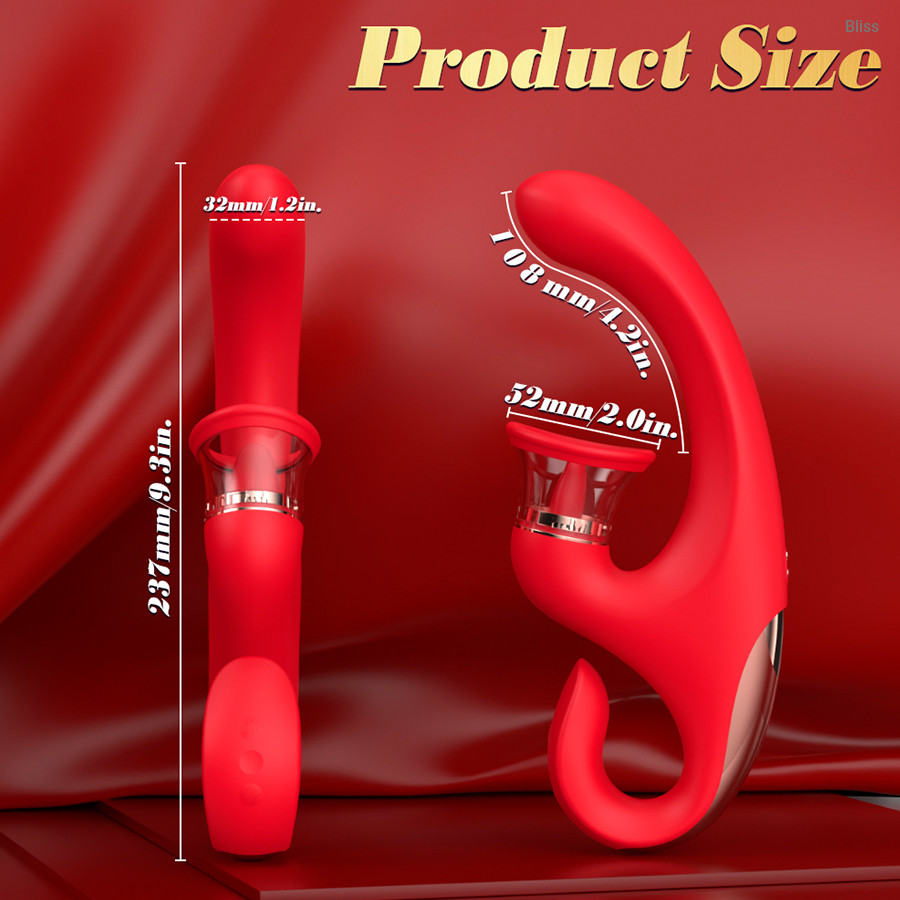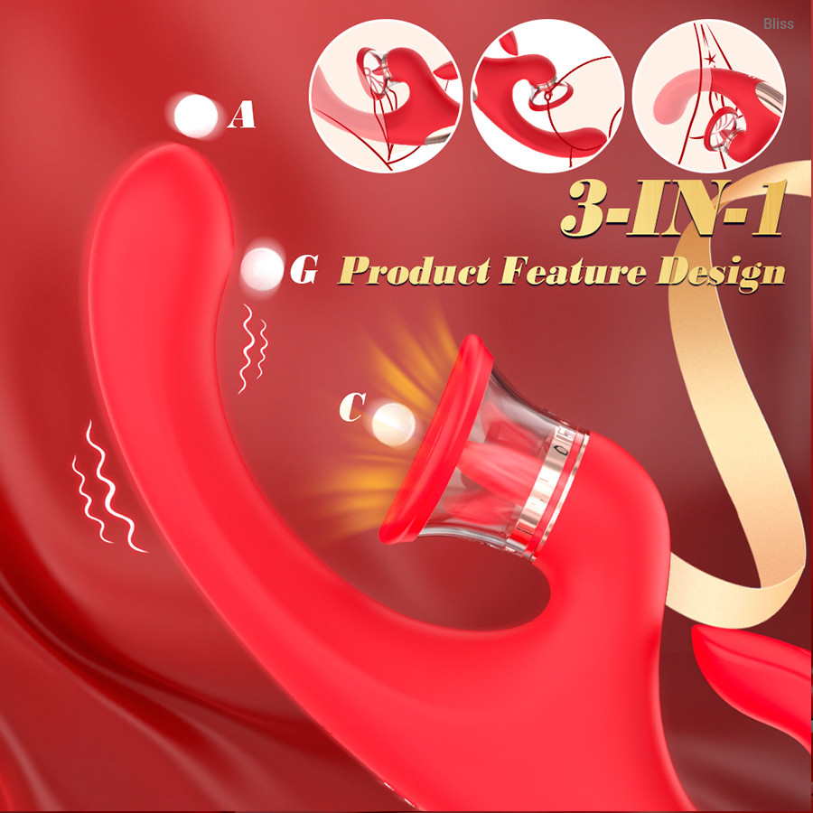 Este innovador vibrador para el punto G combina tres intensas sensaciones: un vibrador realista que lame la lengua , un potente succionador de clítoris y un eje vibrador profundamente satisfactorio. El juguete todo en uno perfecto para el máximo placer interno y externo.
